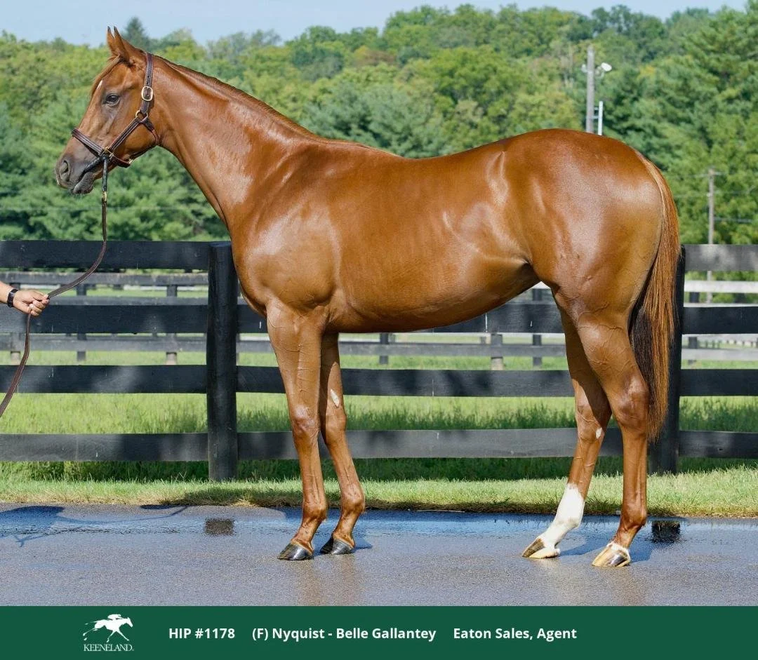 Congratulations to Robert Susi on his winning bid of $220,000 on Hip 1178 at the Keeneland Yearlings Sale. The filly is by NYQUIST out of BELLE GALLANTEY.